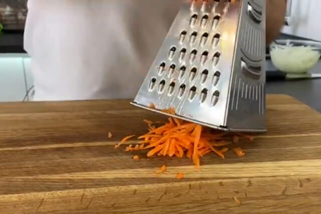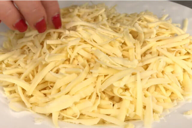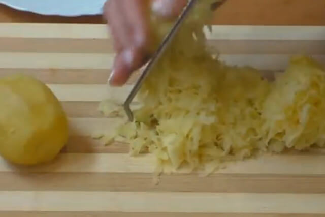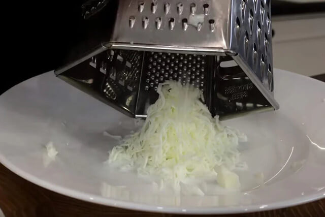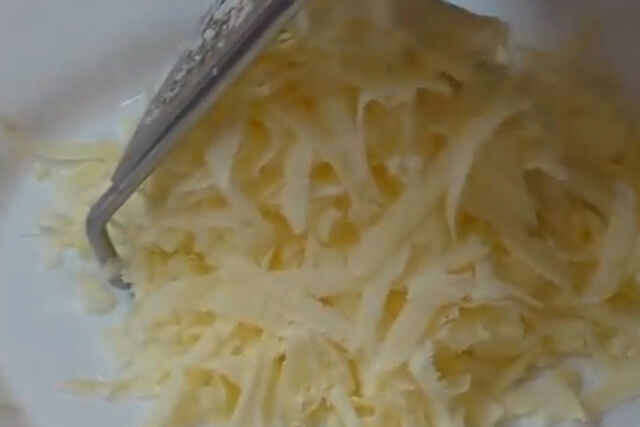 - Картофель отварить, дать остыть, натереть на крупной терке.