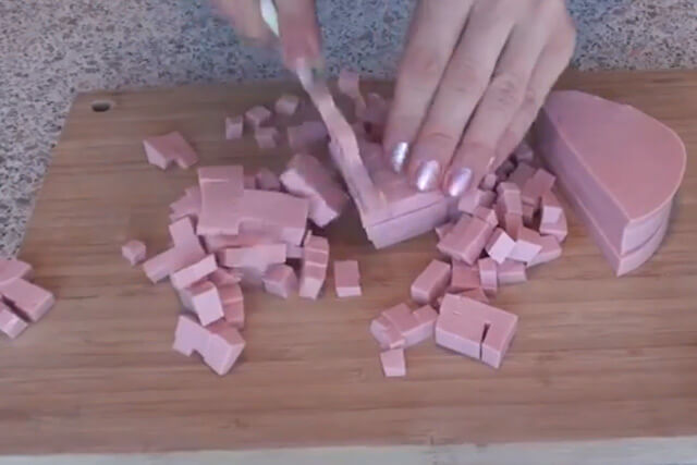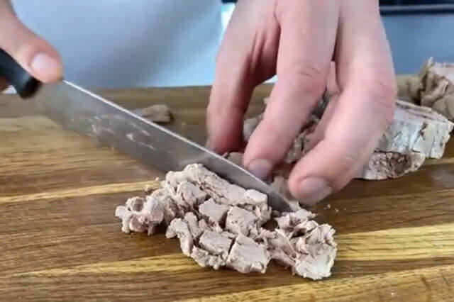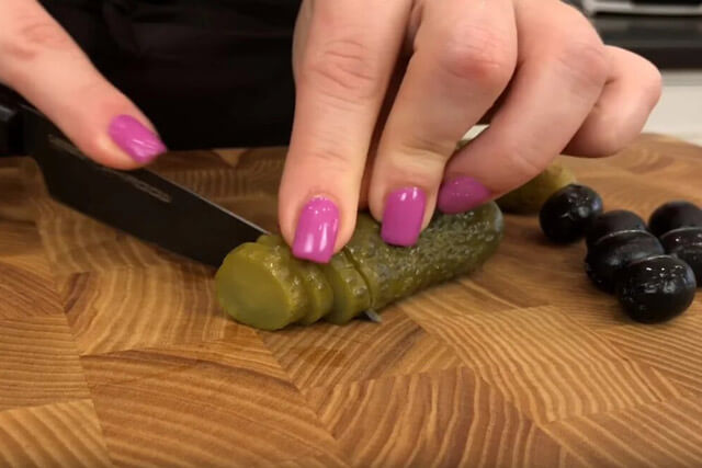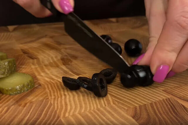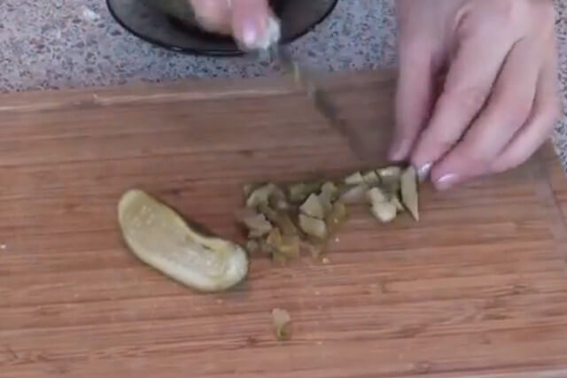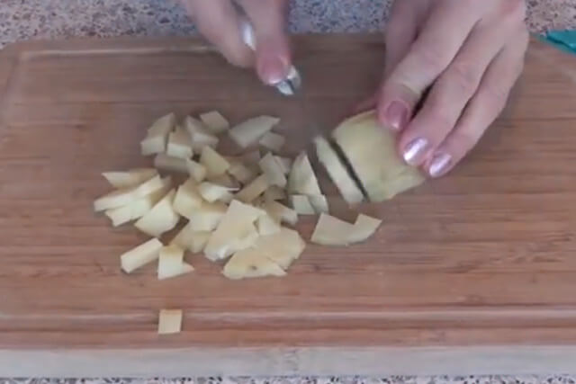 - Нарезать сваренные ингредиенты небольшими кубиками.